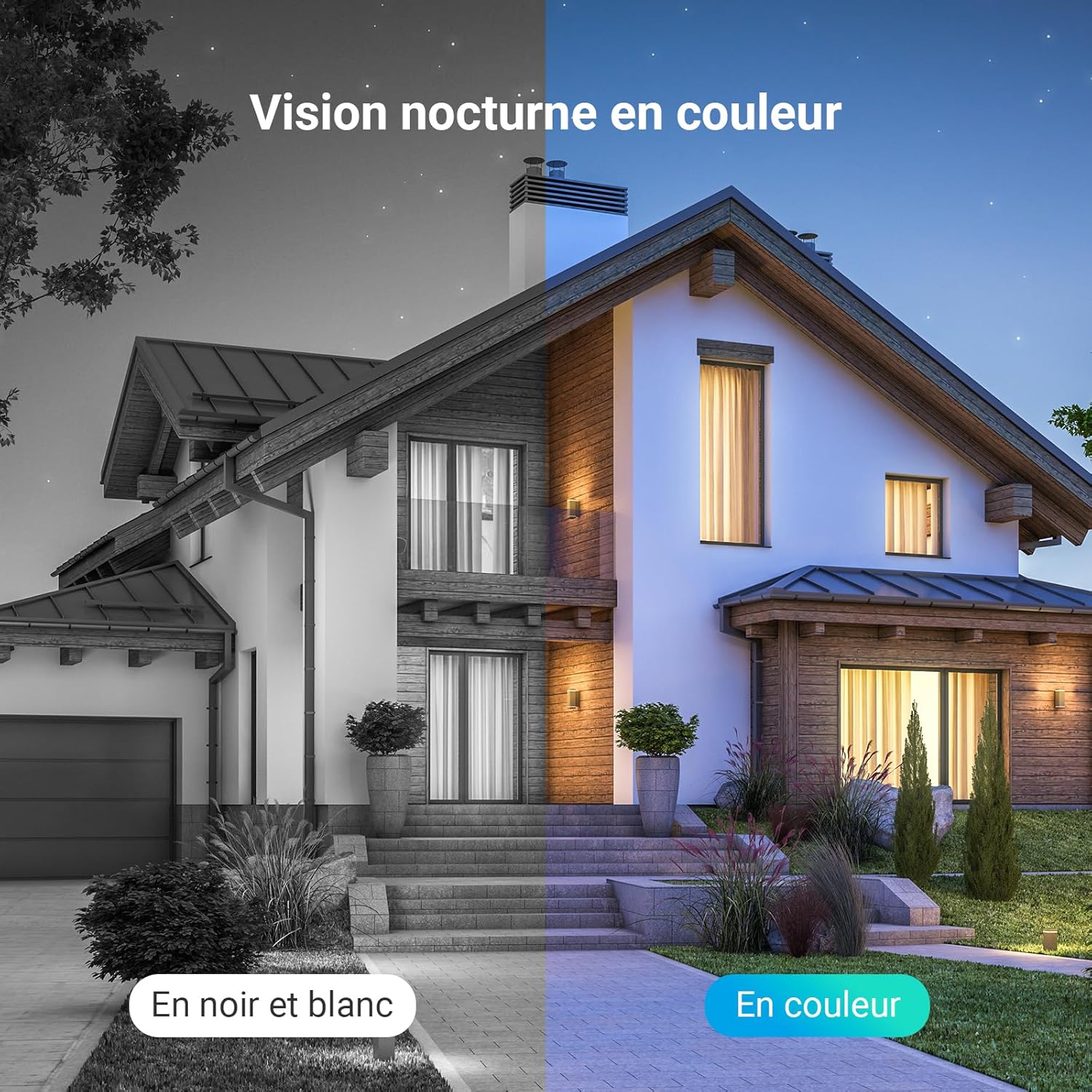 【Couleur Vision nocturne et défense active】 Avec deux projecteurs intégrés, la caméra de surveillance peut produire des images en couleur vives même dans l’obscurité complète. Cela vous permet de voir des détails cruciaux. La fonction de défense active de la caméra offre une protection supplémentaire. Lorsqu’il détecte une personne en mouvement, l’appareil photo déclenche une sirène puissante et clignote deux projecteurs pour dissuasion immédiate sur place.