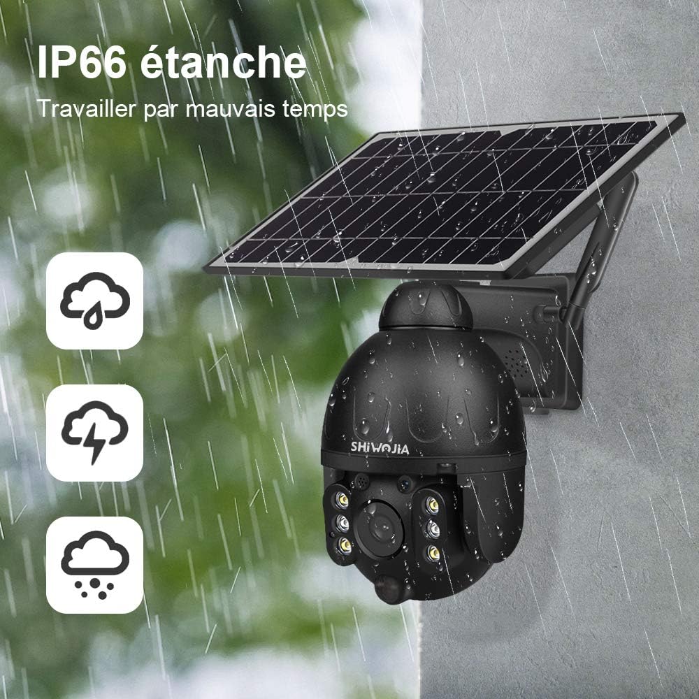 ★ 【Modes d’installation non-stop et 3】 Caméra de sécurité solaire Shiwojia est livrée avec un panneau solaire. Le panneau solaire se combine avec des batteries rechargeables de 15600mAh, fournit une alimentation non-stop pour la caméra de surveillance.Design avec câble d’extension de 5 m.