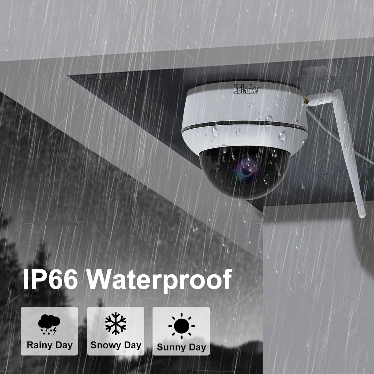 AVEC CETTE CAMÉRA WIFI PTZ ÉTANCE, VOU POUVEZ LA PLATER N’IMPORTE Où DANS LE GARAGE, LA GRANGE ET LE JARDIN, PAS DE SOUCI DU MAUVAIS TEMPS